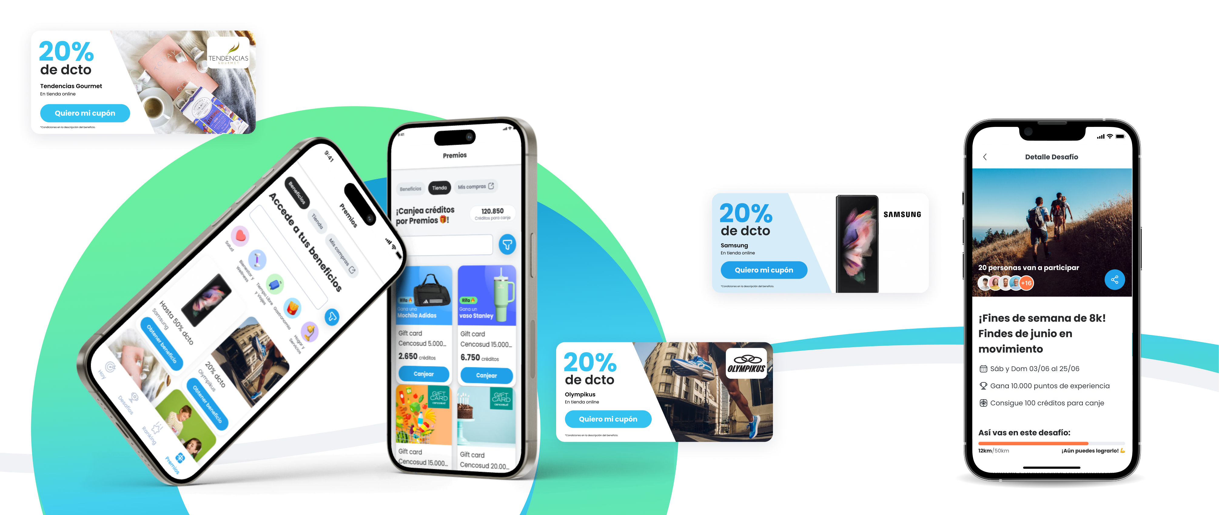 Sigue tus avances y canjea descuentos, giftcards y rifas mientras participas en concursos y retos grupales
